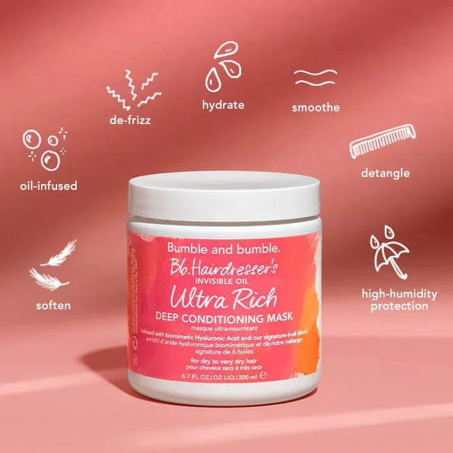 Experience the transformative power of Hairdresser's Invisible Oil Ultra Rich Deep Conditioning Mask. This deeply nourishing treatment restores moisture, softness, and shine to dry, brittle hair. Infused with a blend of six lightweight oils, it smooths frizz and protects against heat damage, leaving your hair silky, manageable, and visibly healthier. Perfect for all hair types, this mask revitalizes your strands with every use, making your hair look and feel luxuriously soft and radiant. Elevate your hair care routine with this ultra-rich formula designed to deliver intense hydration and lasting protection.