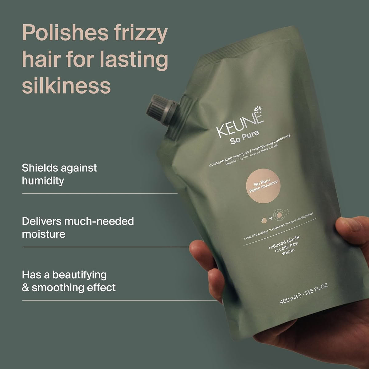 Keune So Pure Polish Shampoo Refill, Smoothing and Anti-Frizz Formula